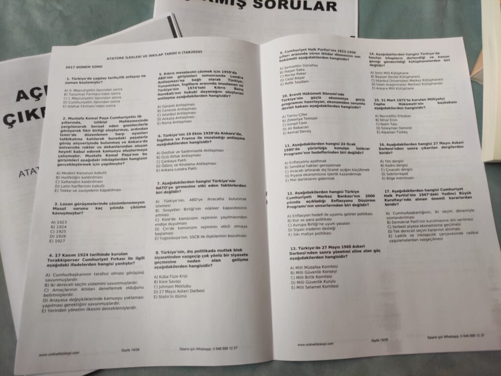 Yarıyıla ait çıkmış sorular kitapçığı